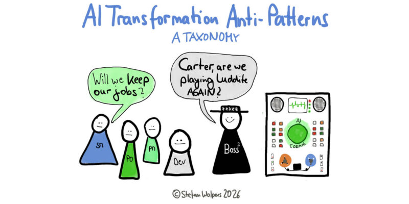 AI initiatives fail for the same reasons Agile transformations did: The majority of failures result from people, culture, and processes, not technology. This article gives you a diagnostic checklist of 10 AI transformation anti-patterns to spot where your organization’s initiatives are coming off track.